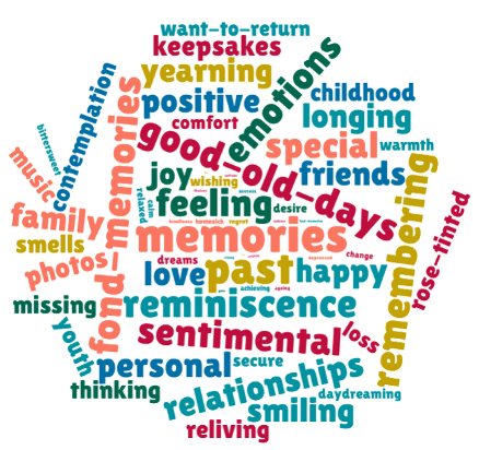 Nostalgia is defined as “a sentimental longing for the past” or “an affectionate feeling you have for the past, especially for a particularly happy time.” (Oxford English Dictionary, Collins English Dictionary)